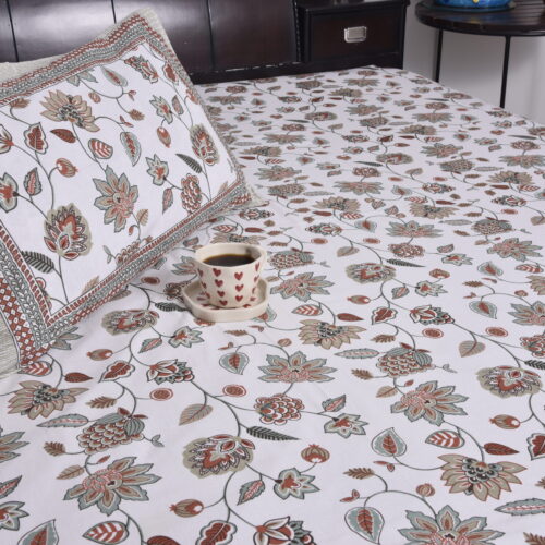 Floral Kalamkari bedsheet – Pure Cotton King Size 108*108 (300 TC)