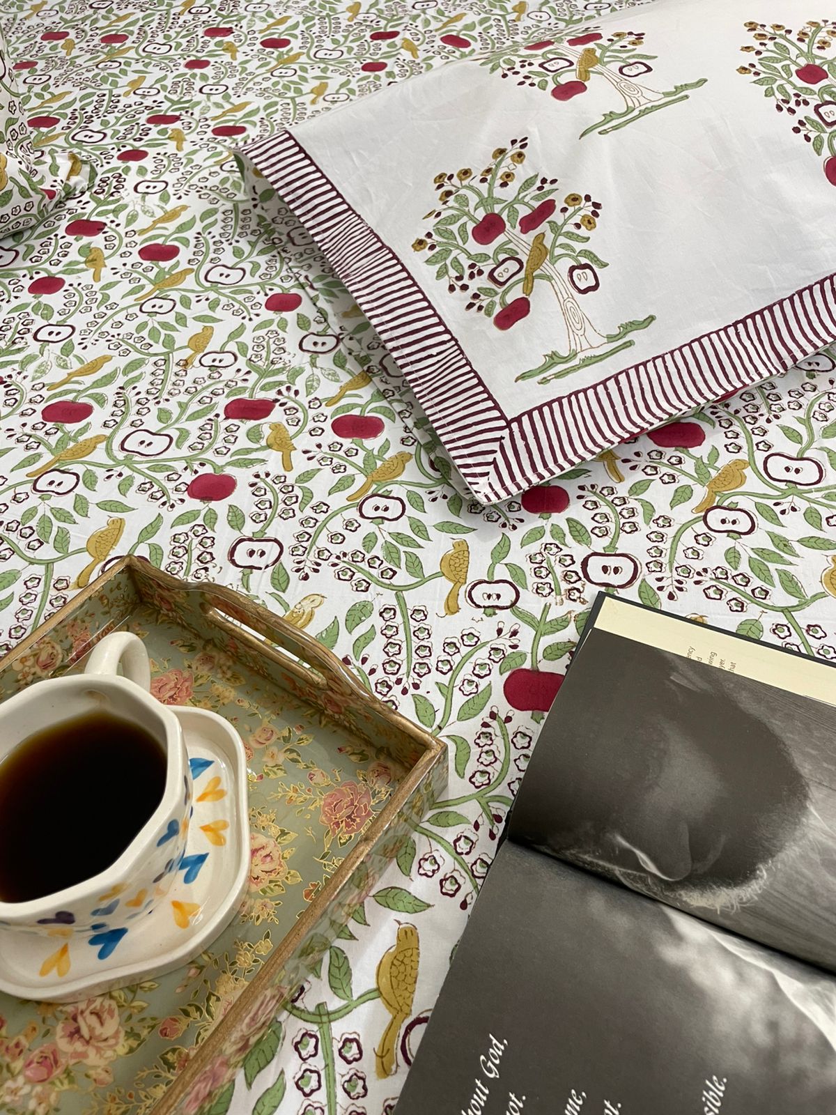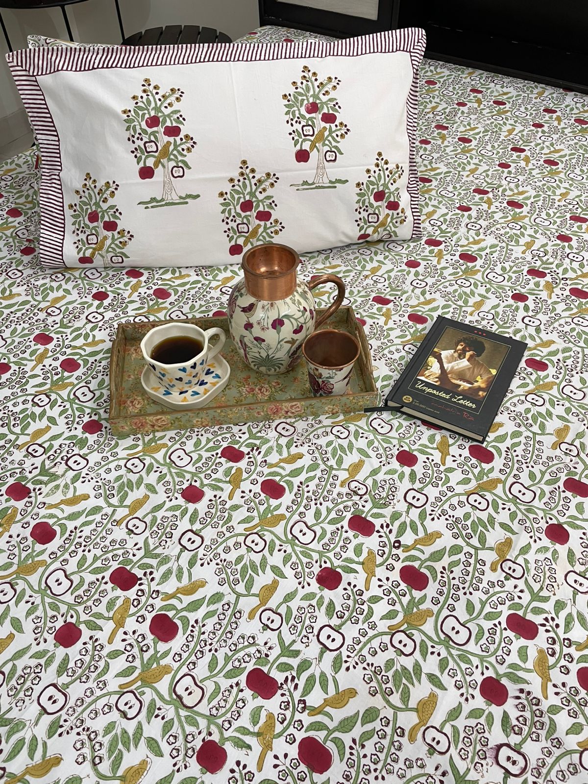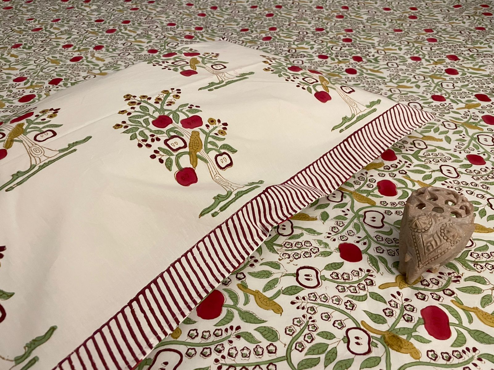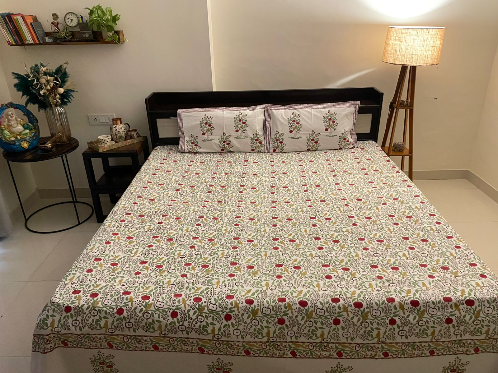 This premium hand-blocked floral bedsheet set with matching pillow covers! Perfect for adding a touch of traditional Indian charm to your bedroom. Made with love & crafted for comfort.