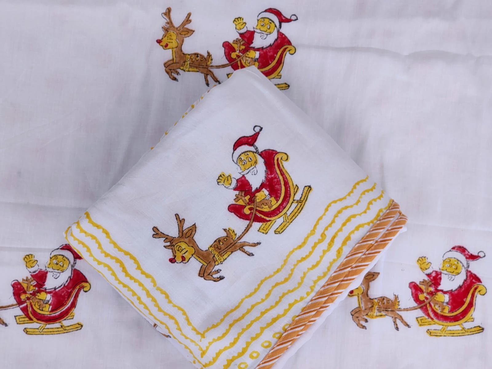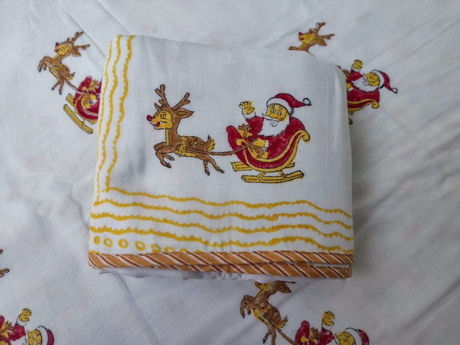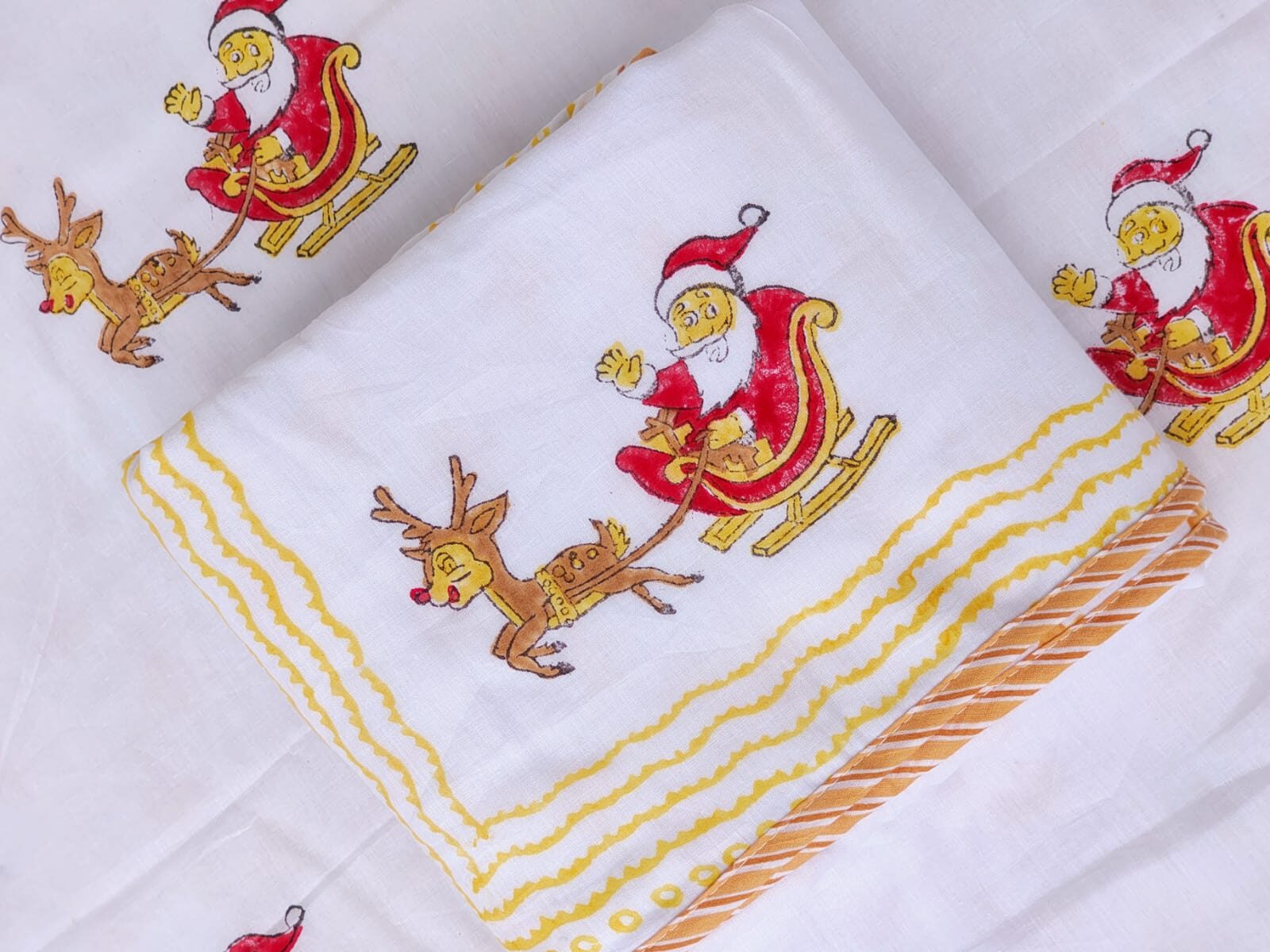 Santa & Reindeer Print – Hand Block Printed Reversible Kids Mulmul Cotton Dohar